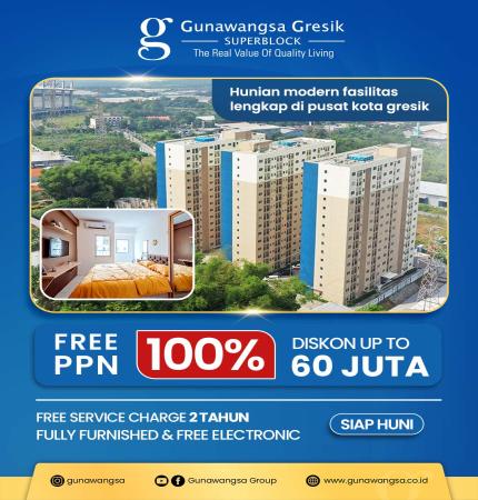 SURPRISE OFFERS AT GUNAWANGSA GRESIK APARTMENT: 100% FREE VAT, IDR 15 MILLION DISCOUNT & FULLY FURNISHED!